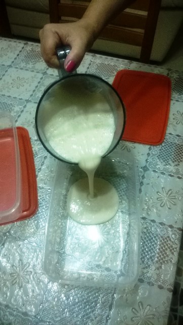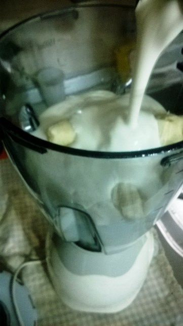 Tagliare la frutta e metterla nel frullatore, unite il latte e la panna, lo zucchero e frullate. Utilizzate una vaschetta e posizionatela nel freezer. Mescolate ogni ora finchè non avrà assunto la giusta consistenza.