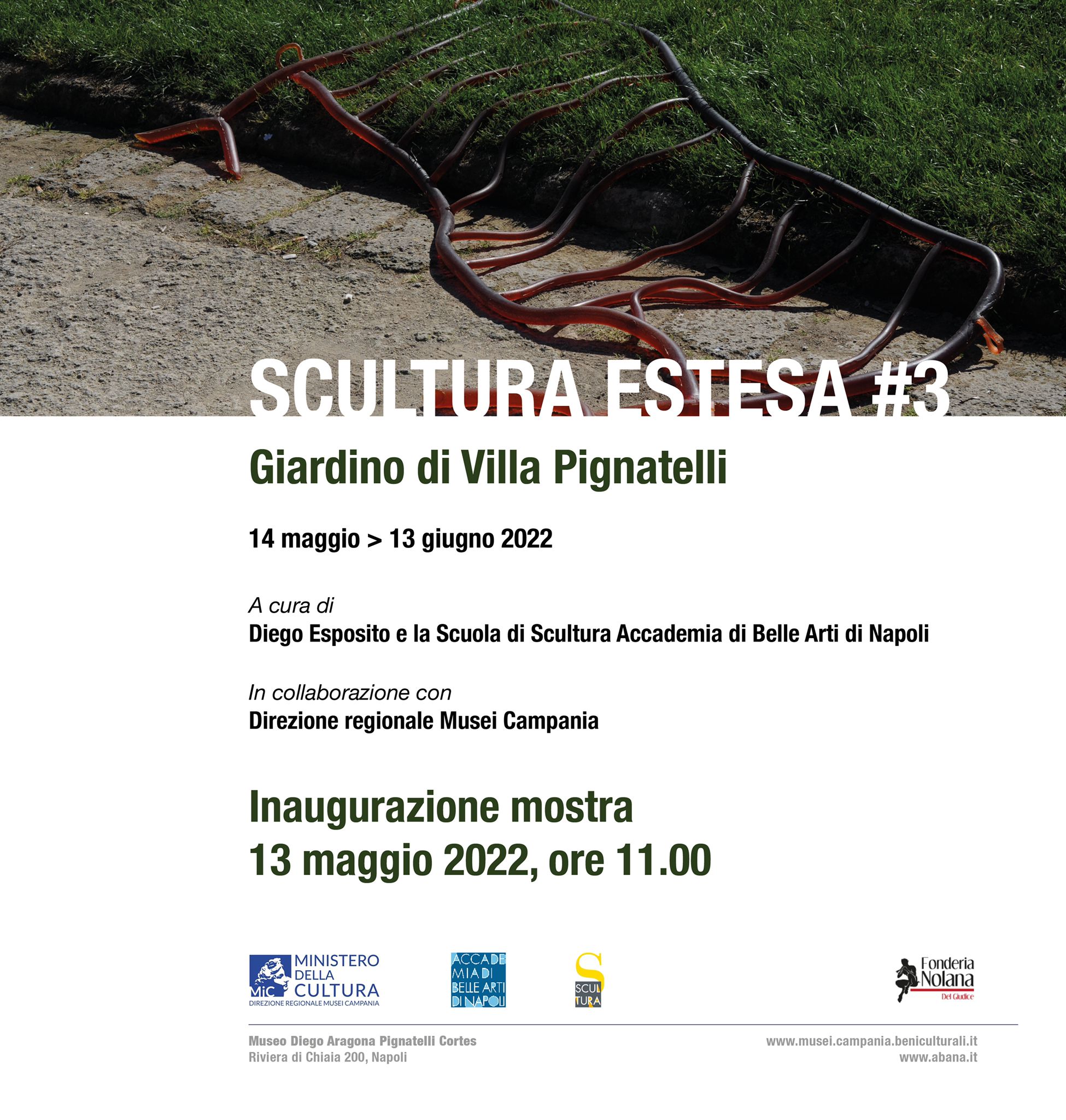 Venerdì 13 maggio 2022, alle 11.00, nel giardino del Museo Diego Aragona Pignatelli Cortés sarà inaugurata Scultura Estesa #3, terza tappa di un progetto espositivo, ideato da Rosaria Iazzetta, coordinatrice della Scuola di Scultura dell’Accademia di Belle Arti di Napoli, che punta a valorizzare la creatività artistica degli studenti del Corso di Scultura dell’Istituto partenopeo.Dopo i primi due appuntamenti al Palazzo della Cultura di Potenza, nel dicembre 2021, e nei suggestivi spazi dell’ex Carcere Borbonico di Avellino nel marzo di quest’anno, 23 opere ineditedegli allievi dell’Accademia saranno esposte nel giardino storico di Villa Pignatelli a Napoli.Il binomio Arte/Natura è il concept a cui i giovani artisti si sono ispirati per le loro opere, che segnano momenti di riflessione su alcuni temi della vita: dallo spreco delle risorse naturali al dramma dell’inquinamento, dal ciclo d’interazione tra uomo e natura al fragile equilibrio del loro rapporto, dalla ricerca dell’Io interiore alle nuove visioni della spiritualità.L’esposizione, a cura di Diego Esposito sotto la direzione artistica di Rosaria Iazzetta, Elisa Laraia, Pasquale Pennacchio e Nello Valentino, è realizzata in collaborazione con la Direzione regionale Musei Campania.