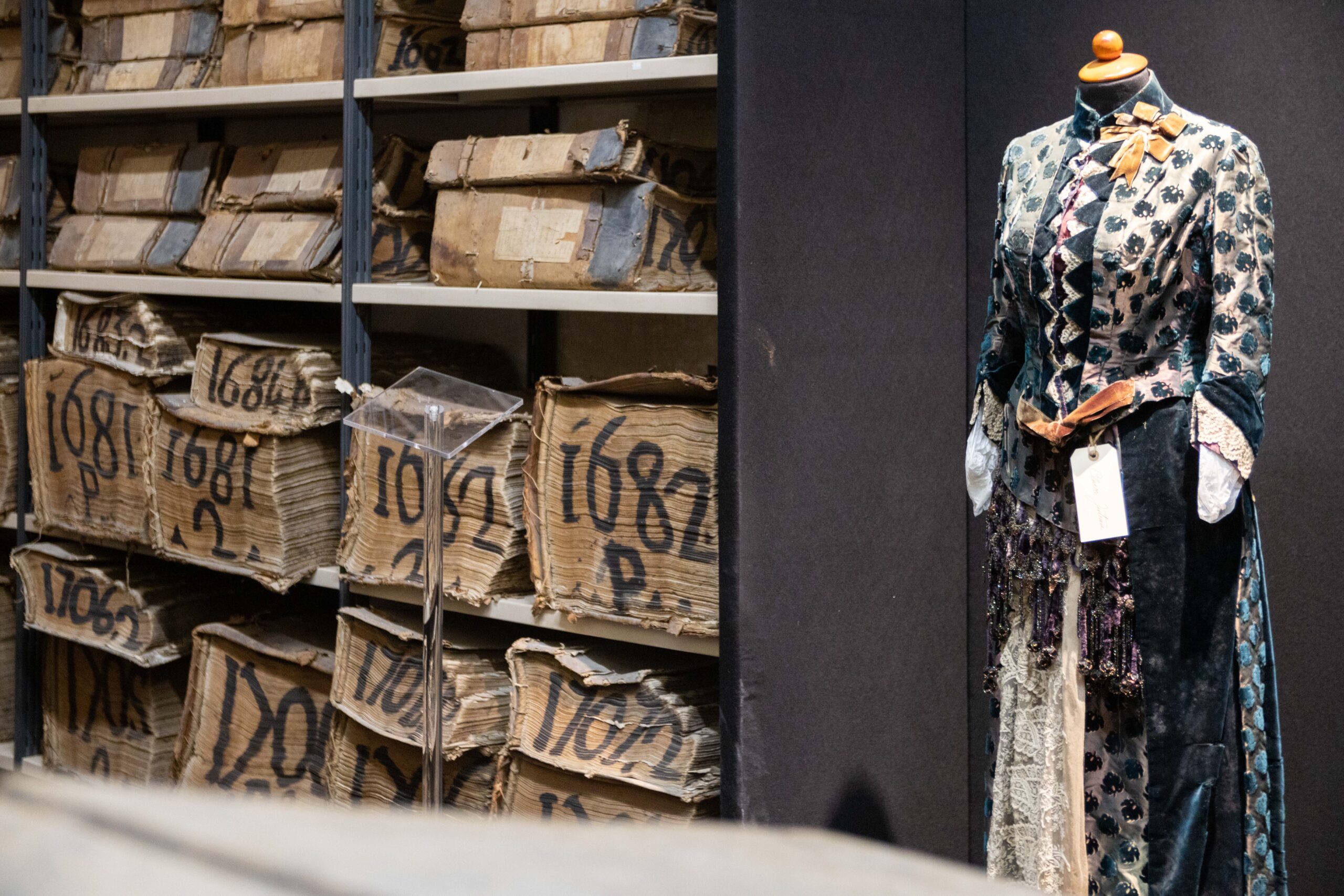Il corpus di documenti proviene da tre importanti archivi: Fondazione Banco di Napoli, Fondazione Mele, la raccolta del collezionista e studioso Gianmaria Lembo. La mostra è in partnership con la Fondazione Mondragone, e accoglie rari abiti dell’imprenditore Ugo Cilento e di collezionisti privati. In questo grande progetto ideato da Bianca Stranieri e Silvana Musella Guida, si racconta di una Napoli fatta di imprenditori e di proprietari di grandi magazzini, con oltre 200 dipendenti e di una moda elegantissima, come documentano i cataloghi di fine ‘800, che raccolgono addirittura più di cento tessuti. Moda che diventa più minimal, ma sempre chic, nel ‘900 con la standardizzazione, che porta un notevole calo del numero di tessuti. La moda al femminile è fatta di corpetti allungati, che mettono in risalto il décolleté e gonne drappeggiate. Gli uomini non escono mai senza bastone e il loden è di gran moda.