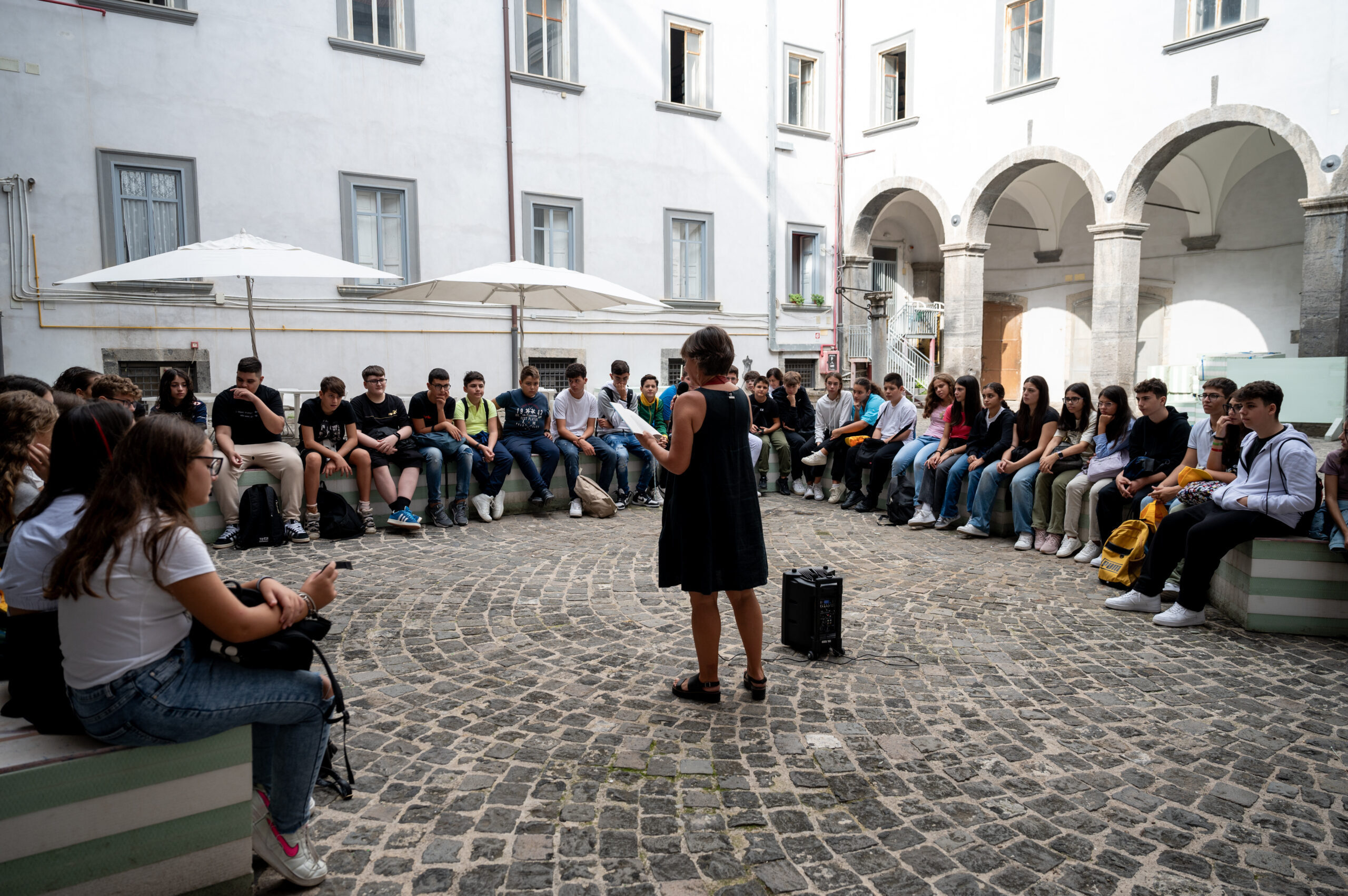Nella prima giornata della decima edizione di Ricomincio dai Libri, oltre 400 studenti delle scuole di ogni ordine e grado del territorio campano hanno varcato le porte dell’Archivio di Stato di Napoli. Tra le scuole presenti, il Liceo Genovesi, il Liceo Galilei, il Liceo Boccioni, e l’Istituto Comprensivo Omero di Pomigliano d’Arco, la Scialoja Cortese Rodinò, che insieme alle classi del Plesso Sant’Eligio Campo del Moricino-Borsellino e altri istituti hanno partecipato a una giornata di approfondimenti culturali.