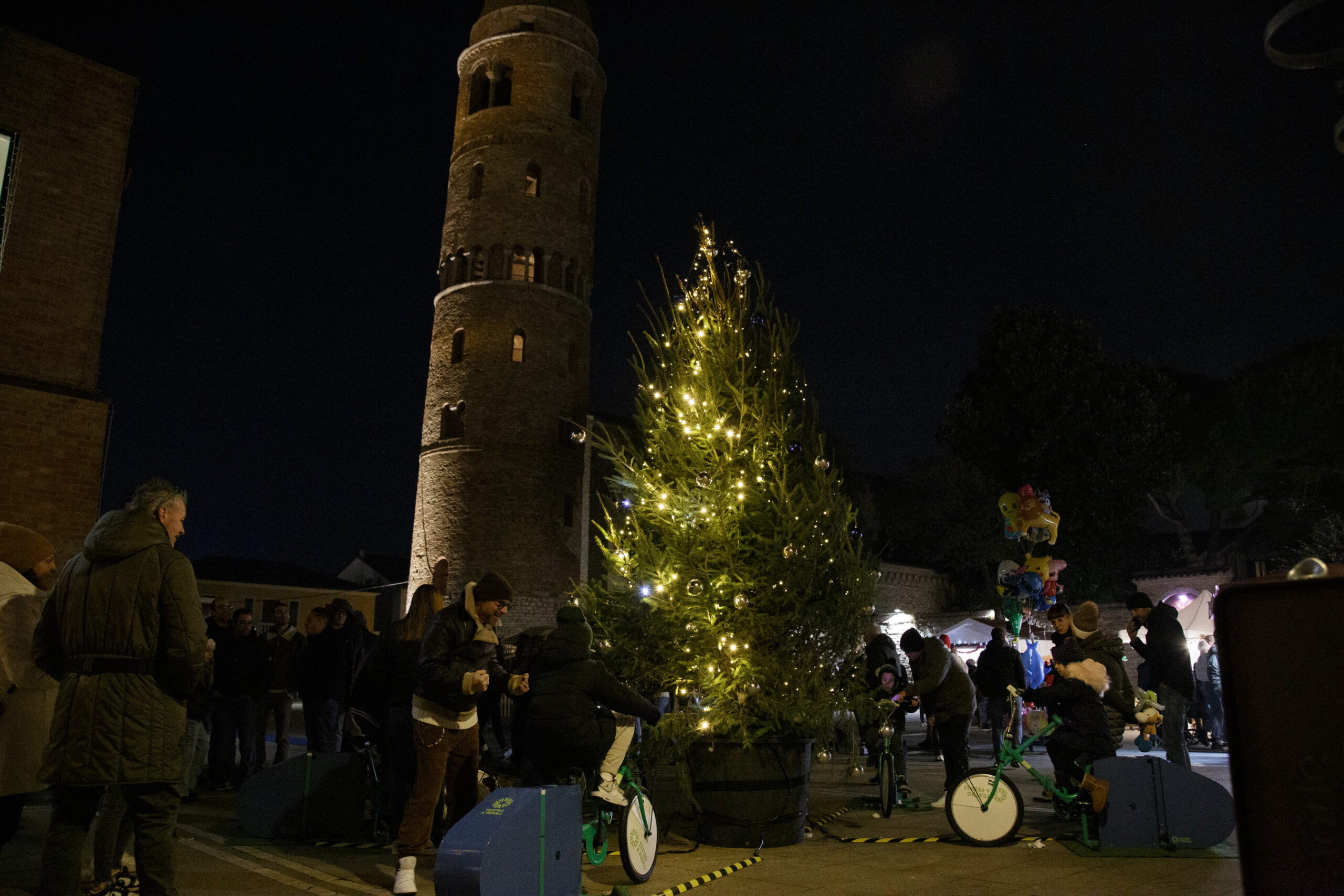 Il Natale a Caorle si è acceso da pochi giorni e l’ambiente sorride. I due alberi di Natale collocati nei pressi di Piazza degli Oriondi e di Piazza San Pio X infatti funzionano solo a pedali. Una scelta green e sostenibile, che sta attirando sempre più curiosi e bambini. Tutti vogliono dare il proprio contributo per tenere accese le luci dell’albero, anche perché ci si scalda pedalando. E, almeno a vedere i primi giorni, per salvare l’ambiente (e accendere le luci) si stanno impegnando più i bambini dei genitori.