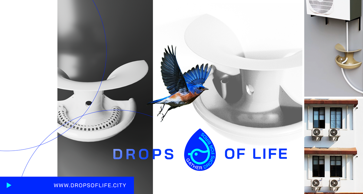 Il progetto introduce un piccolo abbeveratoio urbano, facile da installare, che raccoglie l’acqua pulita di condensa prodotta dai condizionatori e la convoglia in punti di abbeveraggio per uccelli e piccoli animali. Invece di disperdersi inutilizzata sull’asfalto, questa risorsa – già generata ogni giorno da milioni di edifici – può essere riutilizzata per sostenere la biodiversità urbana durante i periodi di caldo estremo.
